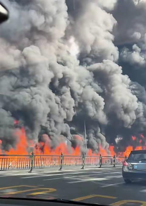 当日下午3时许,事发地附近一位商户告诉极目新闻记者,事发于13时40分许,事发地离地铁口很近,现场停有不少电动自行车,火势蔓延数十米,“一排电动车被烧,有几十辆,火已经灭了。”